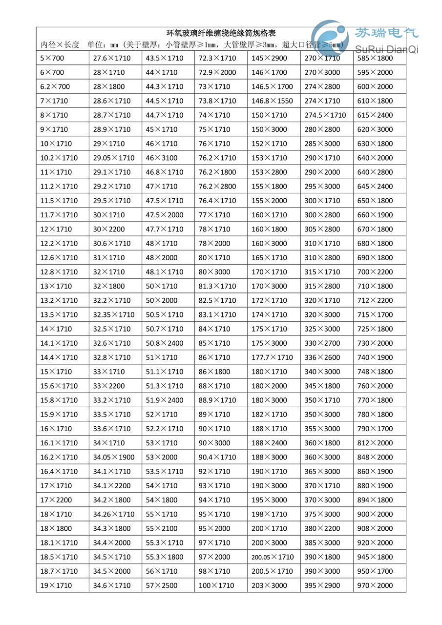 1、环氧玻纤管规格表中的均可定制加工生产,外径根据客户的要求生产产品,小管壁厚≥1mm,大管壁厚≥3mm,超大口径绝缘筒壁厚≥5mm均可定制生产,长度可按需任意分切,产品颜色默认水绿色,其它颜色如蓝色、红色、黄色、紫色、黑色、橙色、棕色、灰色等均可定制生产。